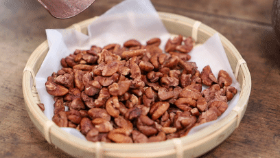 而新鲜的山核桃仁本身香味已足够浓郁,只需少量糖盐增味即可!