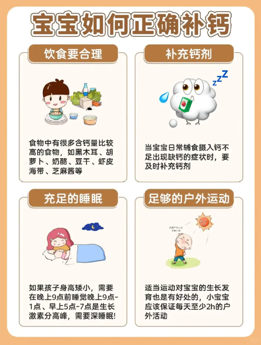 3️⃣睡眠补钙,养成习惯 保证宝宝充足的睡眠尤为重要,吸收的钙转化为骨钙,促进宝宝长高高哦~