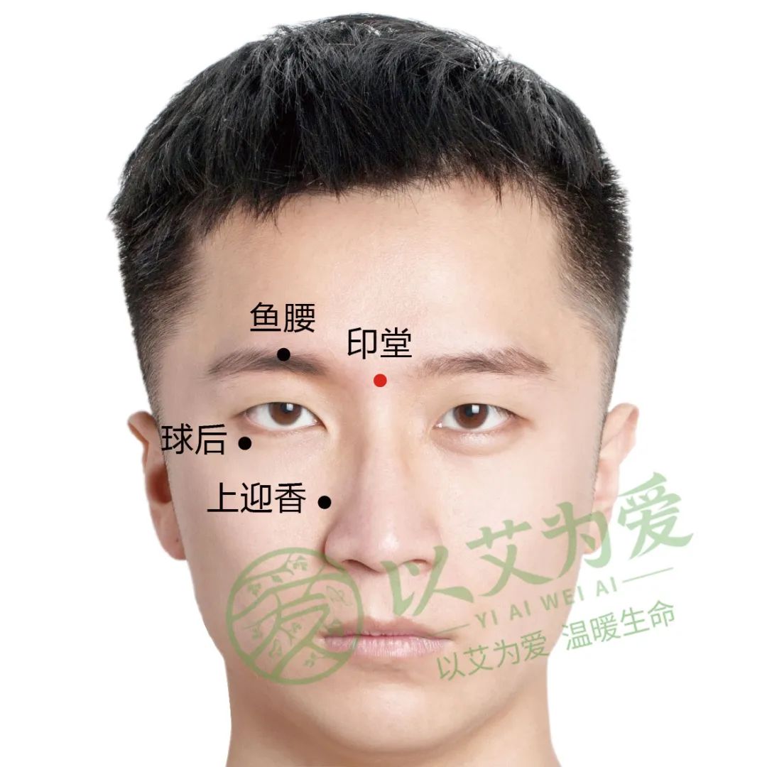 印堂穴很好找,位于脸部正面,左右眉间正中央就是印堂穴。