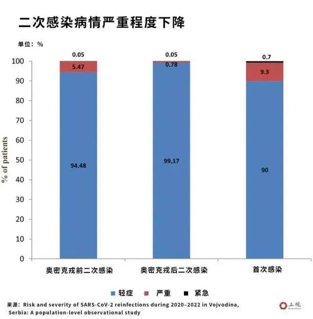 相较于首次感染,二次感染所导致的疾病严重程度有所下降,包括住院率、ICU重症率、病死率等。