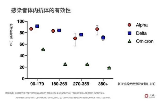 在感染Alpha、德尔塔后的3至5个月,感染者体内抗体的有效性仍分别达到86.6%、91.3%,此后下降幅度有限,最低值依旧在60%以上。