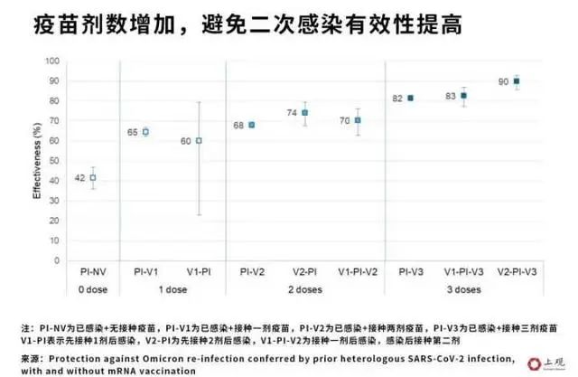 同上述论文,相较于未接种疫苗且未感染的患者而言,接种3剂疫苗后,体内抗体对于防重症的有效性达到91%。