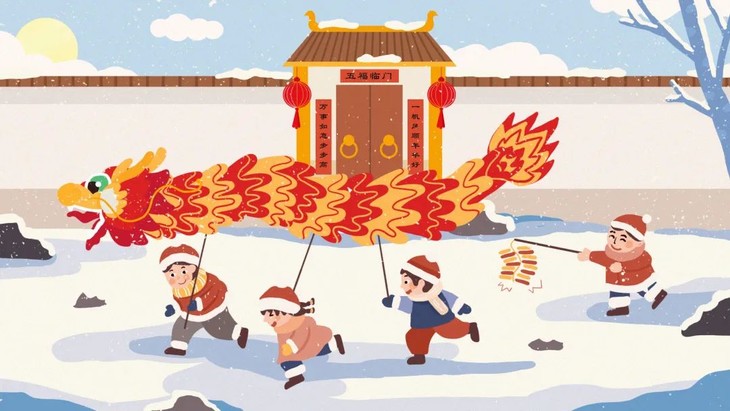东北部分地区在二月二早晨,以长竿击打房梁,谓之“敲龙头”。把龙唤醒,佑一方平安。
