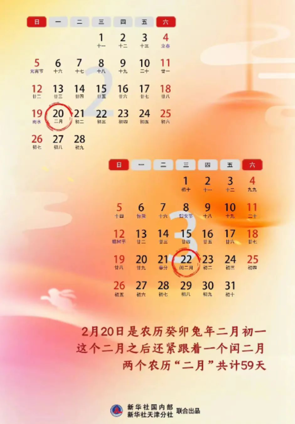 2023年是罕见的双春闰二月,农历全年共有384天。