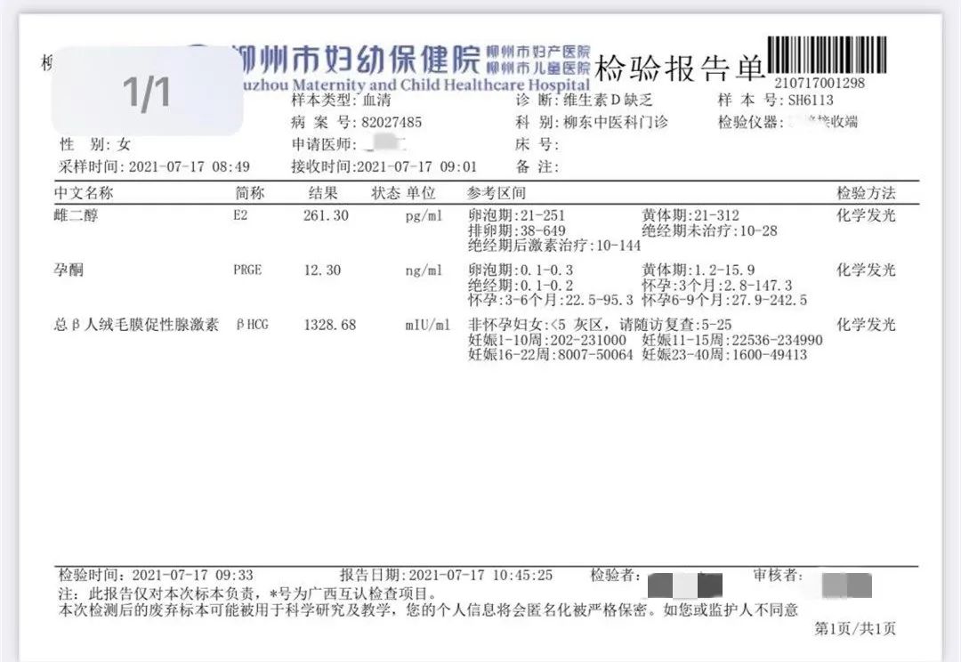 这次怀孕后,我及时去妇幼保健院生殖中心保胎,同时结合了中医保胎。期间,医生看到了我的HCG指标偏高,有疑似葡萄胎可能,让我按期检查;到了第8周,结合B超报告,医生确诊为葡萄胎,让我马上住院手术,我一时接受不了,但也只能按照医生安排做了手术。