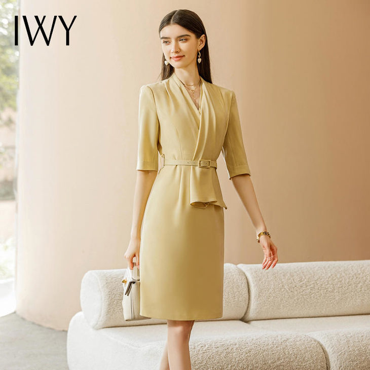 上午篇 职业西装套装新款连衣裙杏色夏季五分袖工作服时尚小香风气质
