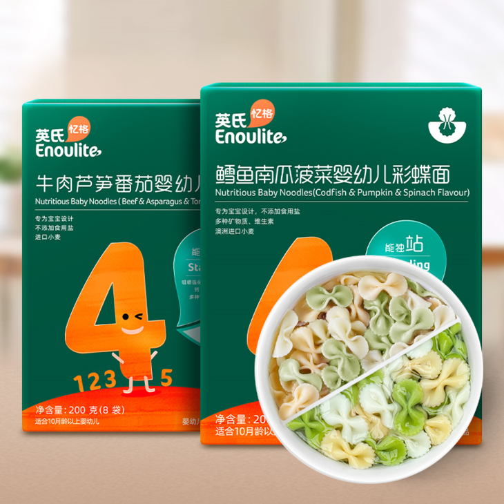 今天分享这款英氏彩蝶面,是我家宝宝最近非常喜欢的一款。
