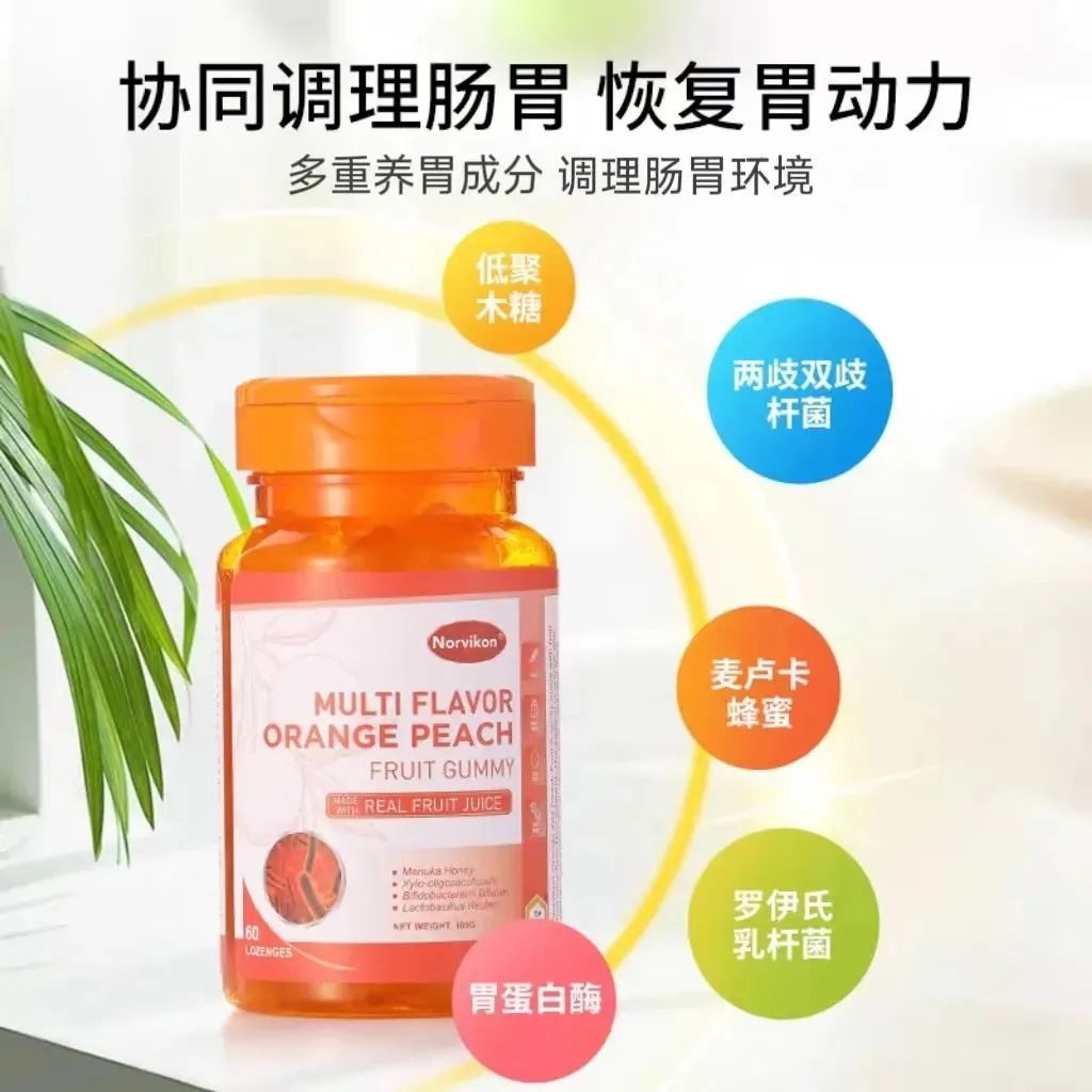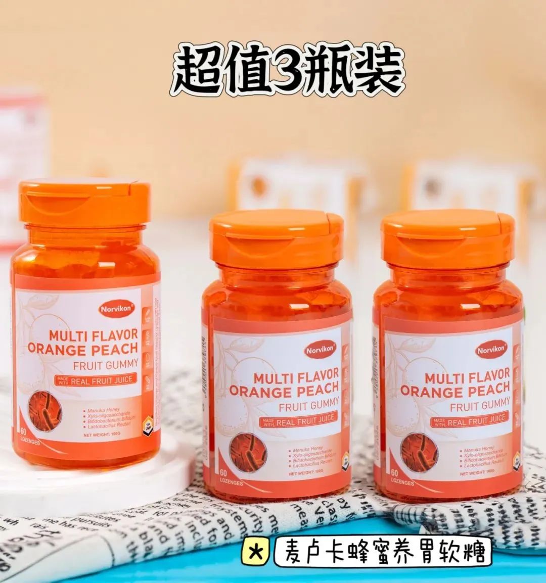 Norvikon麦卢卡养胃软糖一瓶有60粒,每天2粒,咱们的3瓶装,能吃3个月呢。