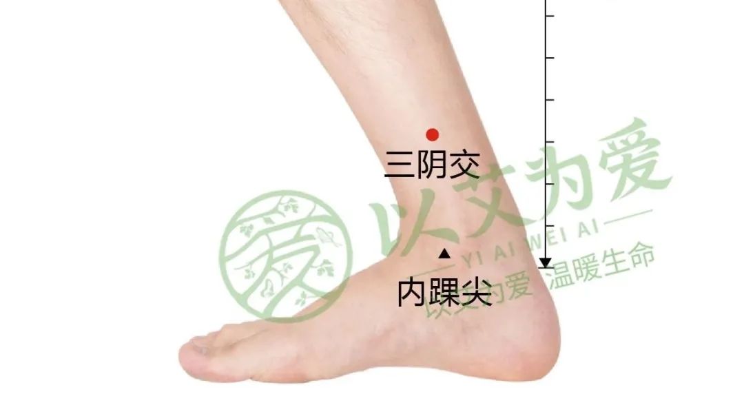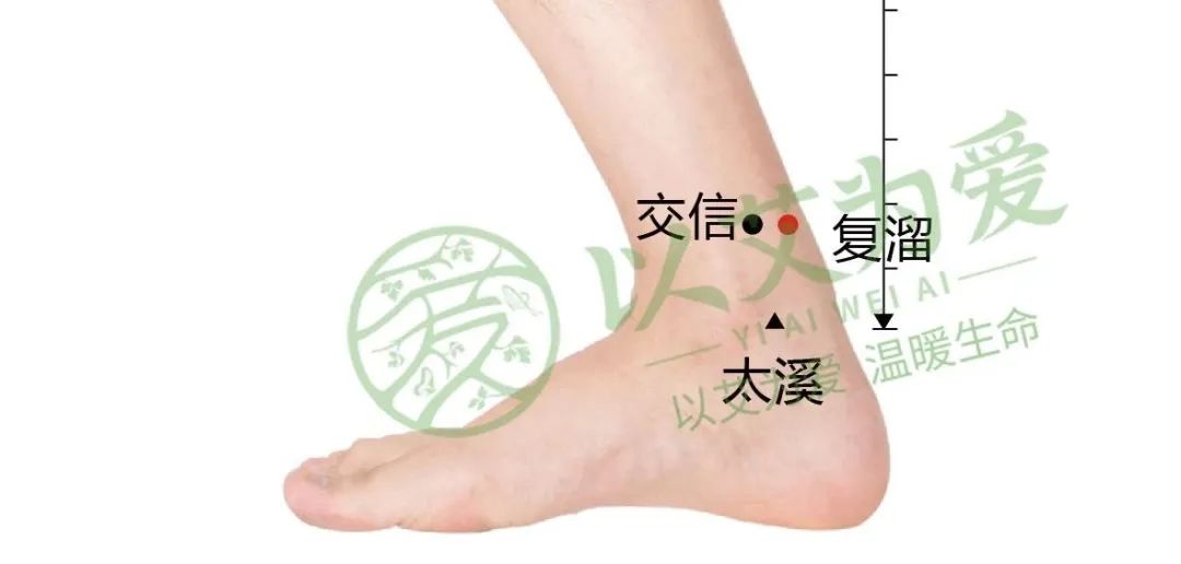 然后,可以艾灸三阴交、复溜、涌泉,把这火气进一步往下导到双脚,引火归源!