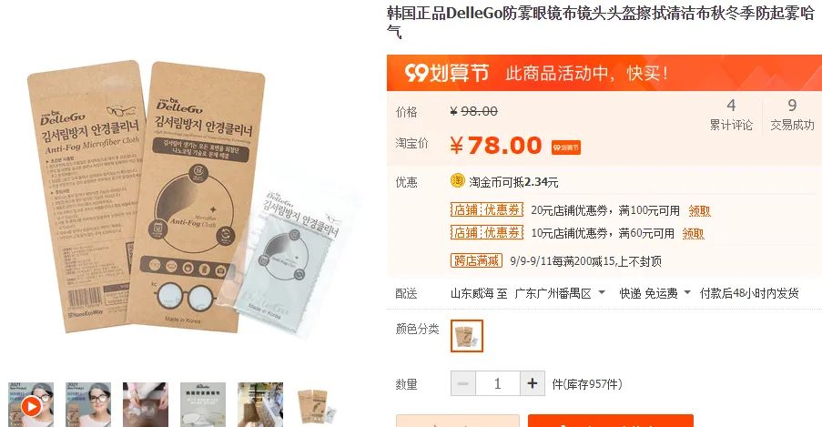 网上也有类似的产品,但价格普遍不够友好,比如韩国的某防雾眼镜布,打折时候还要 ¥78。
