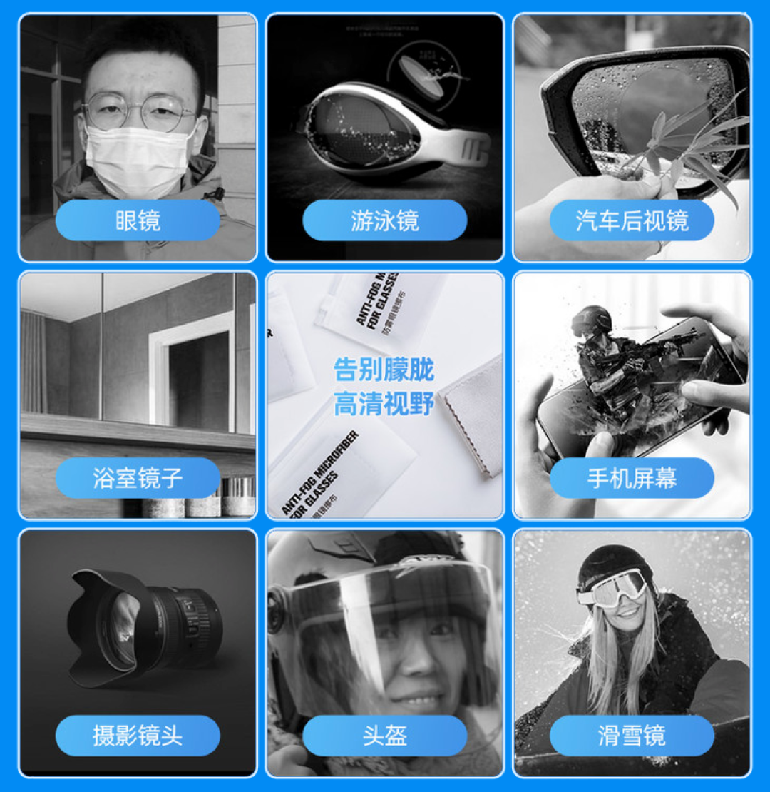 并且,它还不光能用来擦眼镜片,只要是需要防雾的光滑表面都可以放心使用~