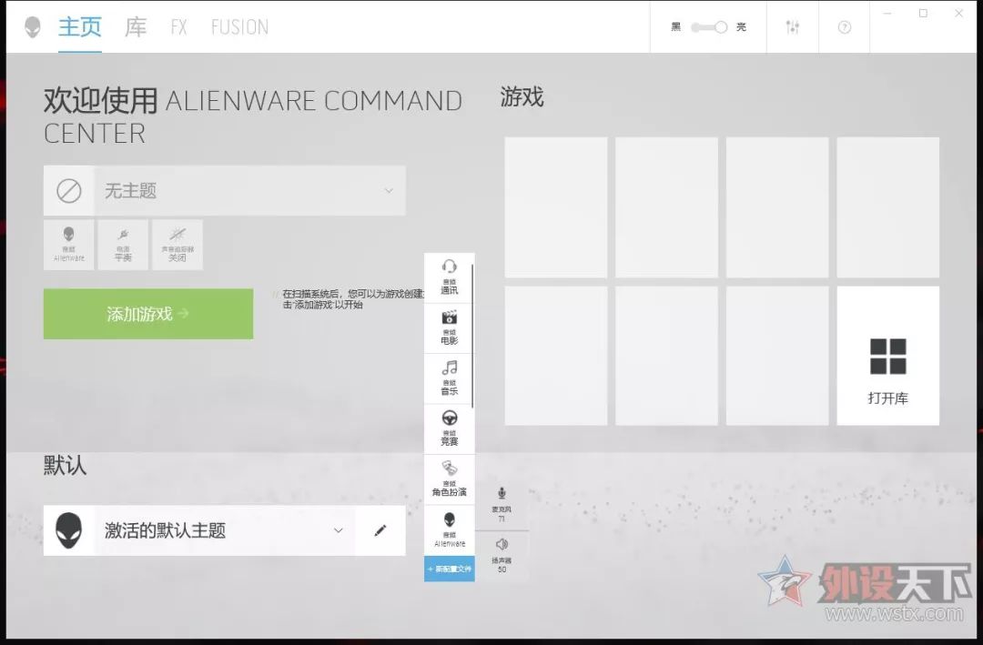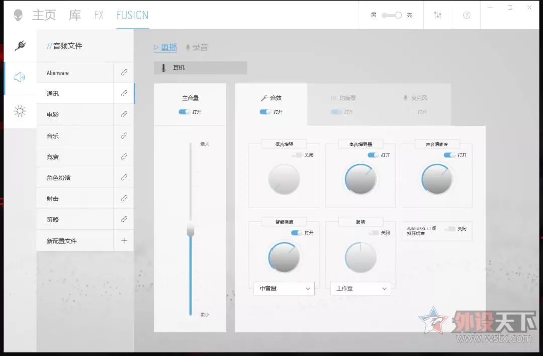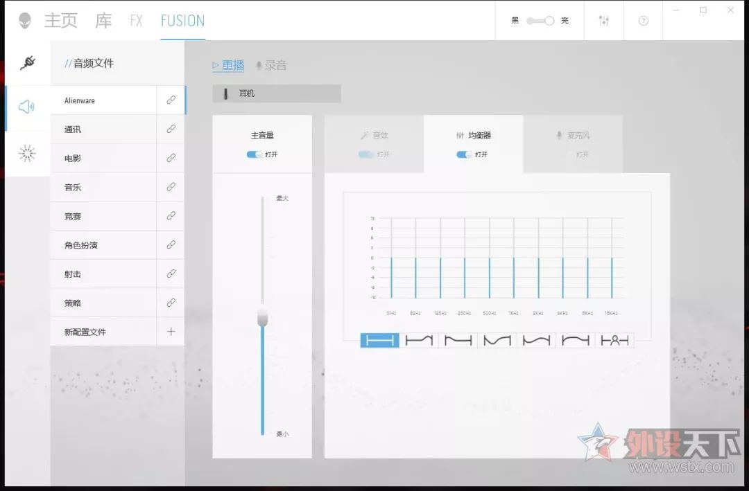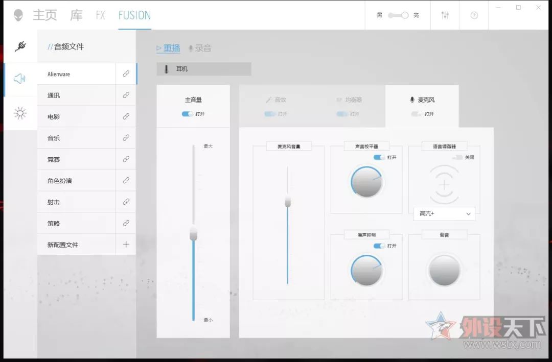 AW510H配备了2m的编织线,基本上可以满足台式机的摆放位置了。可转接USB插头或3.5mm插头也让它具备了更好的兼容性,能够做到即插即用,非常方便。 耳机附送了USB DAC声卡,声卡的外壳为ABS材质,背面做了防滑处理,可控制音量大小以及麦克风开闭,这几枚开关的手感极好,反应灵敏且声音清脆,没有触动后发出的杂音,且做工精良。若配合驱动使用,耳机体现力更佳。 简洁易上手的AWCC驱动软件: 熟悉ALIENWARE的玩家都知道Alienware Command Center(简称AWCC)软件,它作为ALIENWARE的官方驱动,可以统一调试所有受支持的ALIENWARE硬件设备,包括了旗下的外设产品和电脑硬件产品,AW510H则是其中之一。 这款软件包含了主页、游戏库、AlienFX和FUSION页面,用于调节产品的灯光生态联动、音频模式、电源模式,或扫描电脑中的游戏,可设置针对性的配置文件。对于AW510H来说,这款软件主要可以针对它的音效进行个性化调节,自由切换6种自定义音效。当开启均衡器后,声音的空间感会进一步加强。 实际体验: AW510H的三大世界级标准认证,使得它拥有相比于正常音乐耳机更高的频响范围,这也是它可以达到20Hz-40kHz超大动态范围的佐证,耳机的高中低频和解析、声场的表现也比普通耳机更加出色。从实际体验来看, AW510H很适合欣赏音乐和电影,对于游戏耳机来说,这样的兼容性也是不多见的。 在游戏过程中,AW510H 可以表现出不少声场细节,层次丰富,并且具有精准的定位,利于听音辨位,这对于FPS游戏玩家可是相当重要了。比如在绝地求生中,笔者可以清晰地听到两栋建筑之外的脚步声,以及700米左右的开枪方位,配合耳机的无缝线一体式耳罩,即使长期沉浸在激烈的枪战中,耳部的热量依旧可以很快地散发,缓解了佩戴耳机时的燥热感,不影响游戏发挥。另外,耳机的头梁长度合理,在佩戴的过程中不会夹头,细节设计到位。 AW510H 采用了动态范围为20Hz-40KHz的50mm耳机驱动单元,并支持虚拟7.1环绕音效。它的声音均衡,细节丰富,能呈现出宽广的声场,尤其是观看场景宏大的战争电影时,会使人具有强烈的代入感,仿佛亲临战场厮杀一般。 耳机的声音调校风格比较清冽,低频质量较好,具有不错的弹性,在游戏耳机中算是上等水平了。如果配合驱动中环绕音、均衡器等功能加持,则能够在FPS游戏中具有更优秀的表现。 总结: AW510H的定价为899元,“细微之间,听见浩瀚”,从实际体验来看,这款耳机也确实是强化了声音细节的表现,不论是听音乐还是玩游戏,耳机都可以辨识到细小的背景声音细节,并且也确实拥有宏大的声场,这对于一款游戏耳机来说相当可贵了。 总得来说,AW510H是一款很不错的产品,尤其对于ALIENWARE粉丝来说,更具吸引力。作为家族中不可或缺的一环,值得大家多多关注。