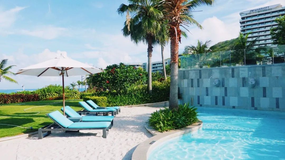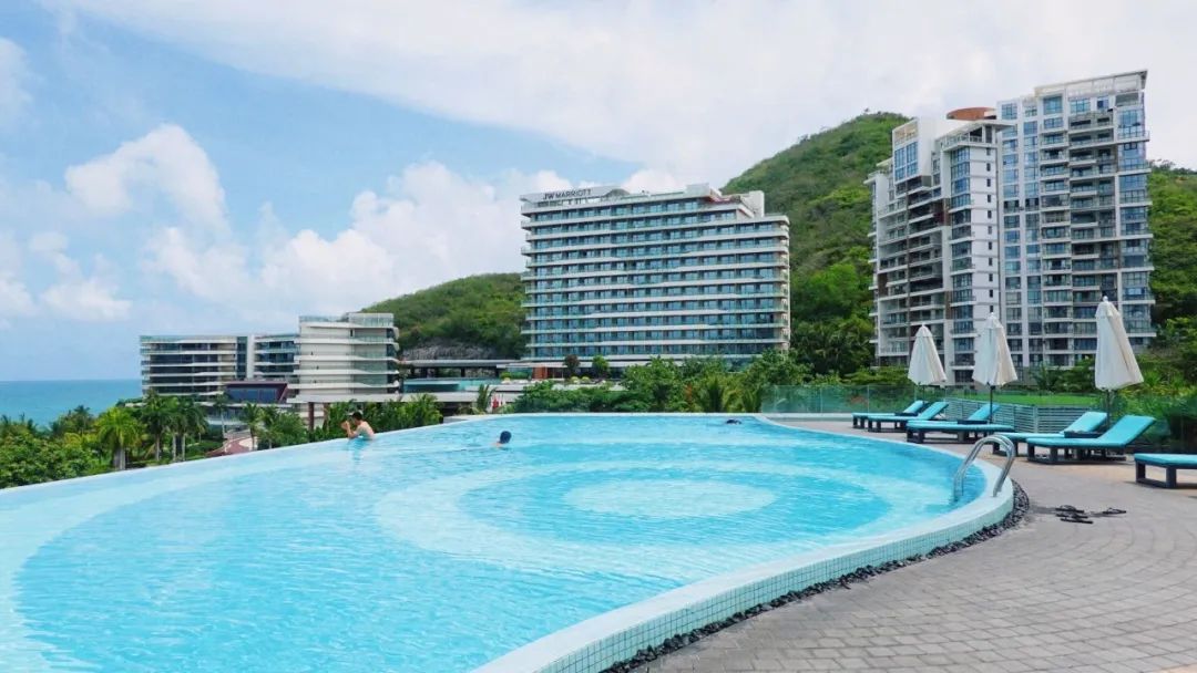 离开海棠湾,这回终于进城了!位于大东海湾的山海天JW万豪与傲途格精选是本次入住的第二组“好搭档”,他们虽不像上面俩家共用设施,但园区同样相连。