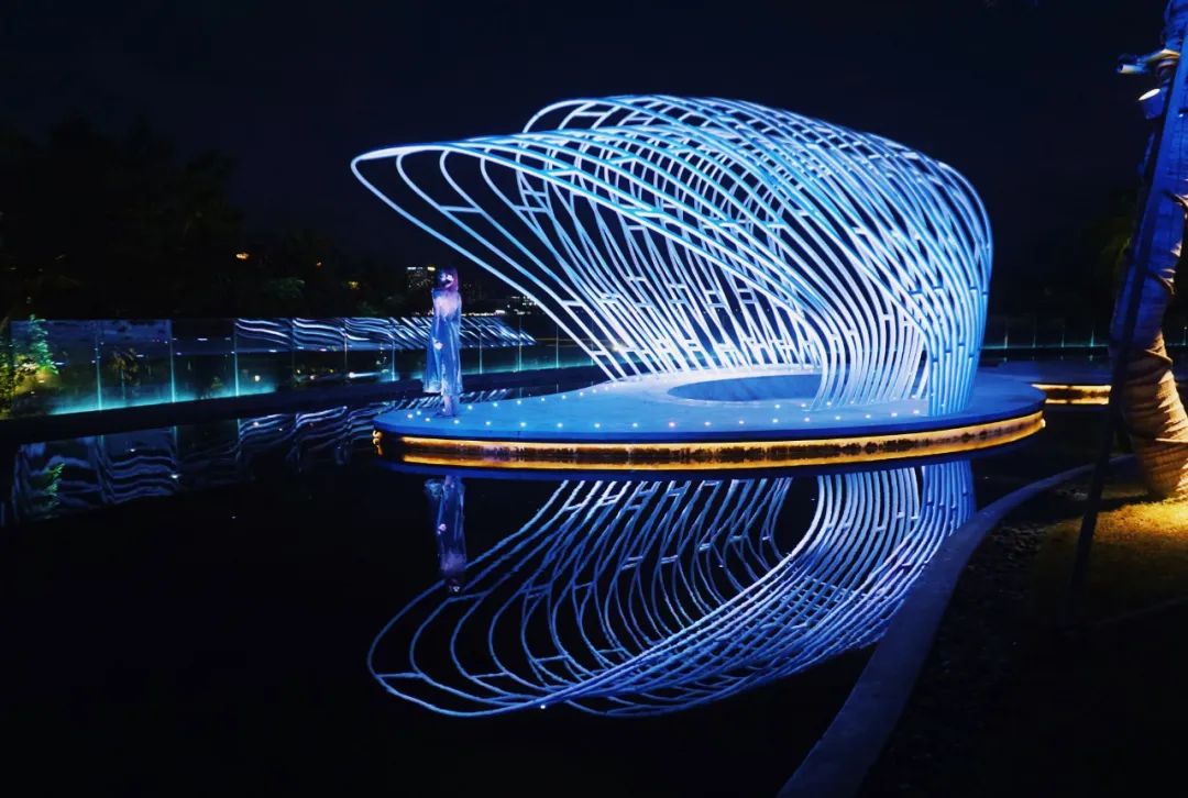 ▲傲途格·酒店君在大堂美人鱼雕塑中凹造型▲