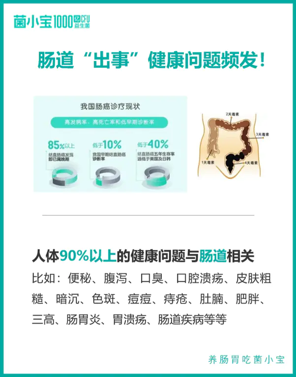 😨人体90%以上的健康问题是与肠道相关,比如:便秘、腹泻、排便恶臭、口臭、口腔溃疡、皮肤粗糙、皮肤暗沉、色斑、痘痘、痔疮、肚腩、肥胖、三高、肠胃炎、胃溃疡、肠道疾病。