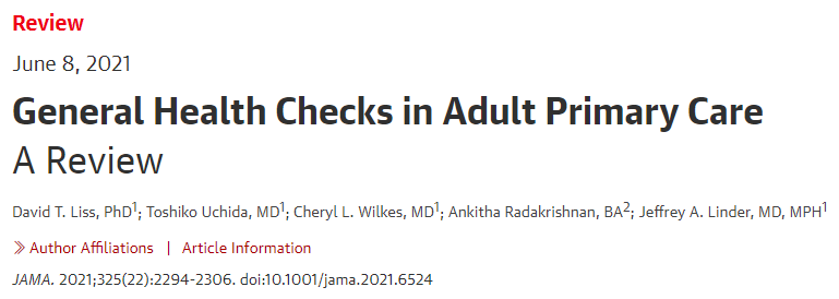 近期,顶级医学期刊《美国医学会杂志》(JAMA)发表了一篇重要研究,该综述回顾了近60年间的32项高质量研究后指出,常规体检可以更好发现和控制慢性病,促进生活习惯改变、疫苗接种和癌症筛查,而且改善患者的自我健康感受。
