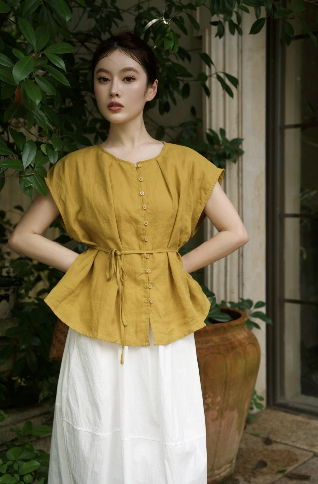 EV-6101自然-苎麻系带上衣