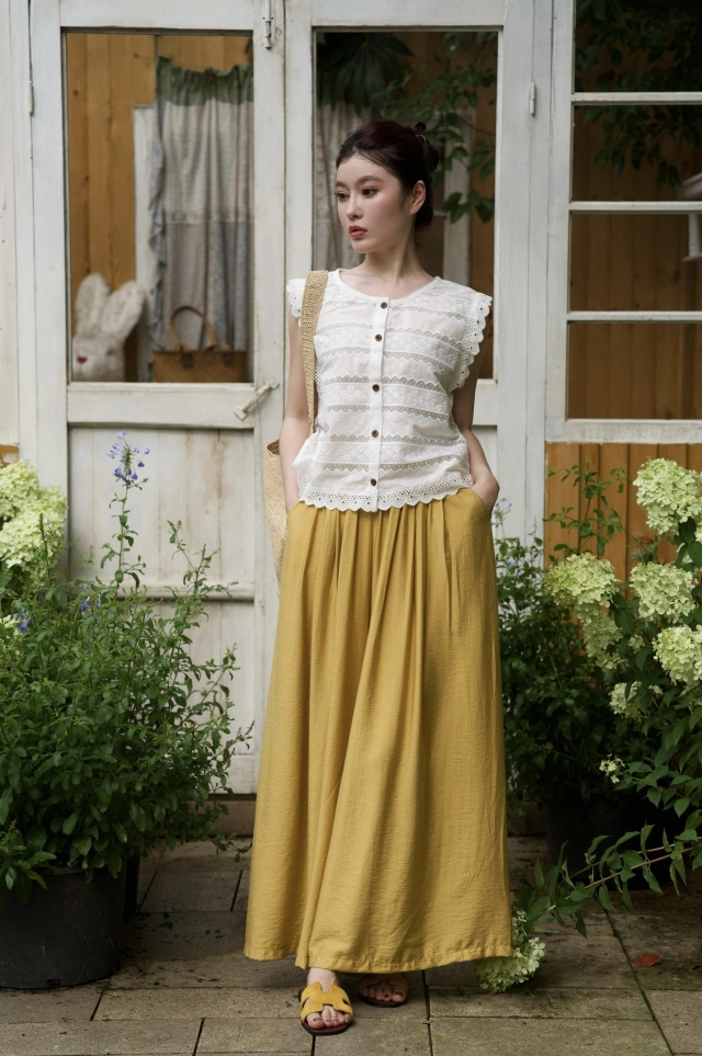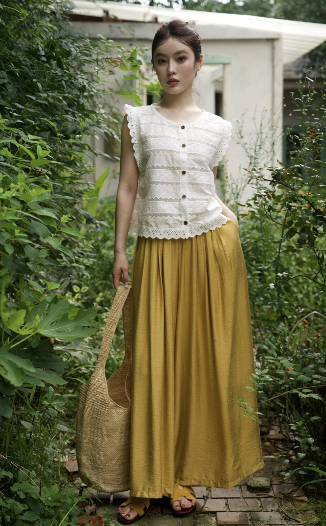 搭配蕾丝无袖白色上衣