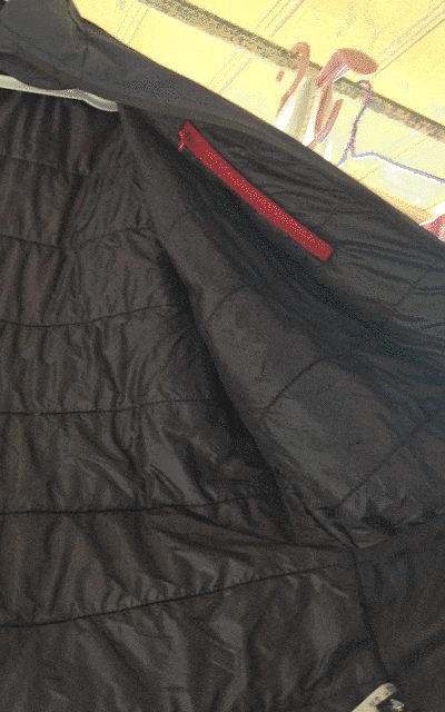 这件衣服水洗后拍拍就能穿,除了P 棉拒水不易受潮外,还得益于内里用缝线进行了锁棉,洗衣机高速甩干后仍然稳定、不会结团。