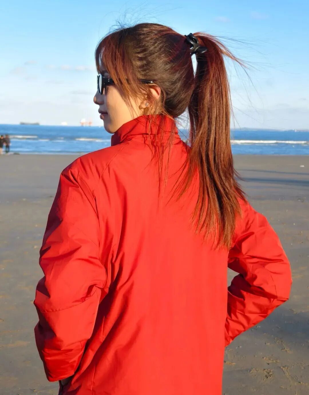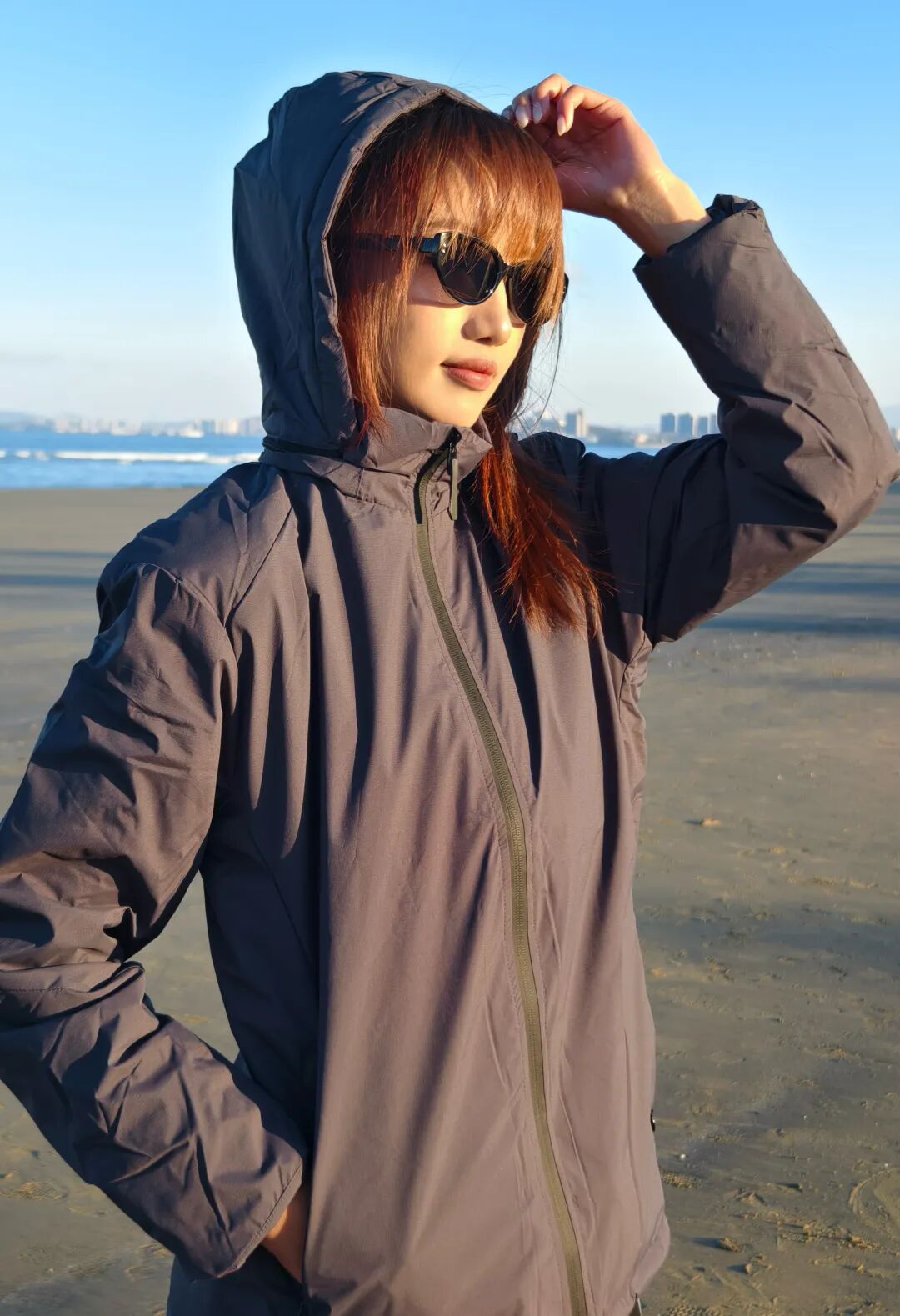 上身好看修身,不臃肿,下摆的收缩设计,可以避免衣服底部灌风。
