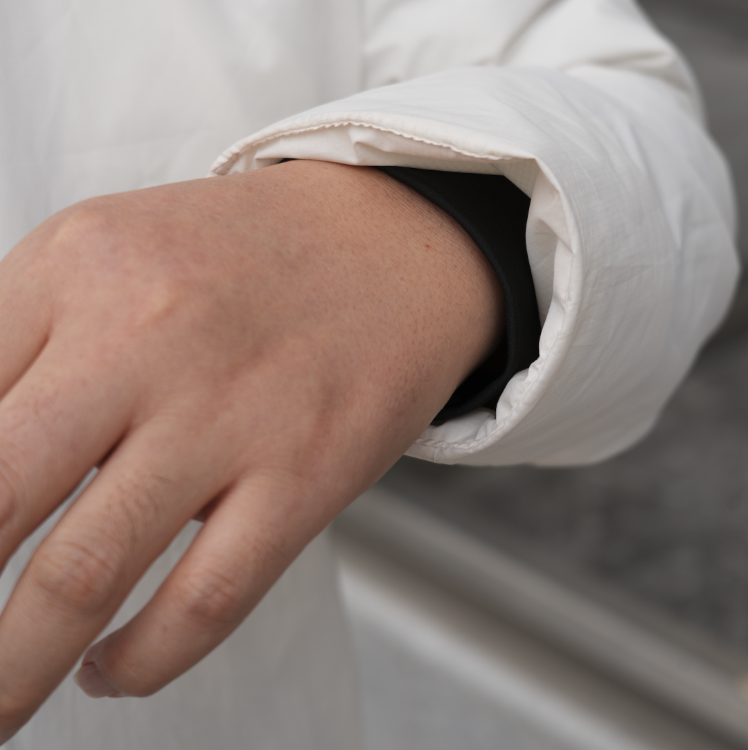 但放在冬天,就很适合!因为大家往往内层衣服都不薄,堆到袖口正好可以和袖口严丝合缝,挡住寒风,而且还不会勒。