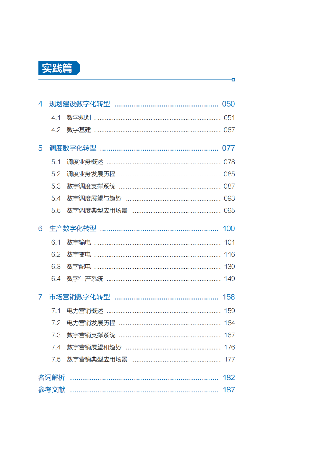 本书结合电网企业数字化转型的演进历程与内在规律,全方位、多角度展示数字电网理论体系和实践成果,旨在帮助读者更好地理解电网数字化转型的内在规律和主要特征,并为推动电网数字化转型提供参考。全书分为基础篇和实践篇。基础篇主要介绍电力系统及数字电网基础知识,阐述电网数字化转型的底层逻辑和数字电网的内涵特征;实践篇选取电网规划建设、调度运行、安全生产、市场营销等电网核心业务的数字化转型场景进行深入分析,展示传统业务如何实现数字化转型,介绍数字业务未来发展趋势。