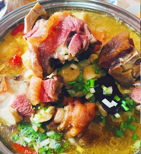 腊蹄髈,无外乎水煮和清蒸。不论哪一种方法,都非常简单,力求不破坏蹄髈的原味。经过师傅的匠心细作,蹄髈本身被赋予的味道足够让人唇齿留香。简单的香料加入,便组成了煮制腊蹄髈的全部材料。一会,这道腊蹄髈的美味,便可以出锅上桌了。