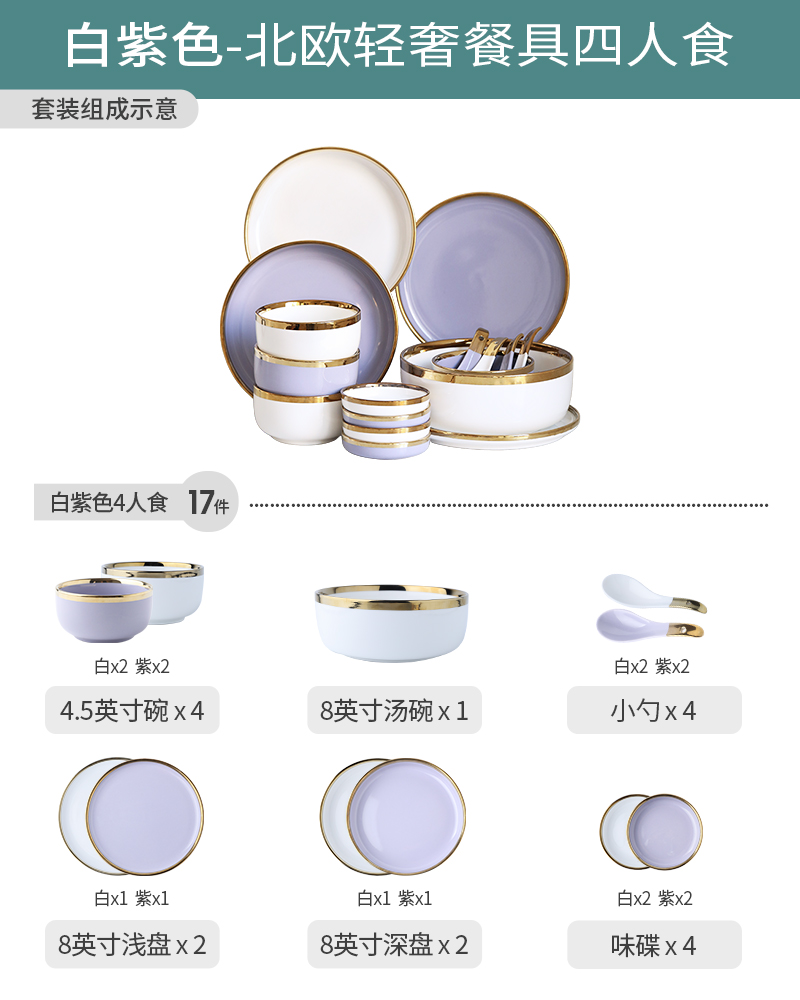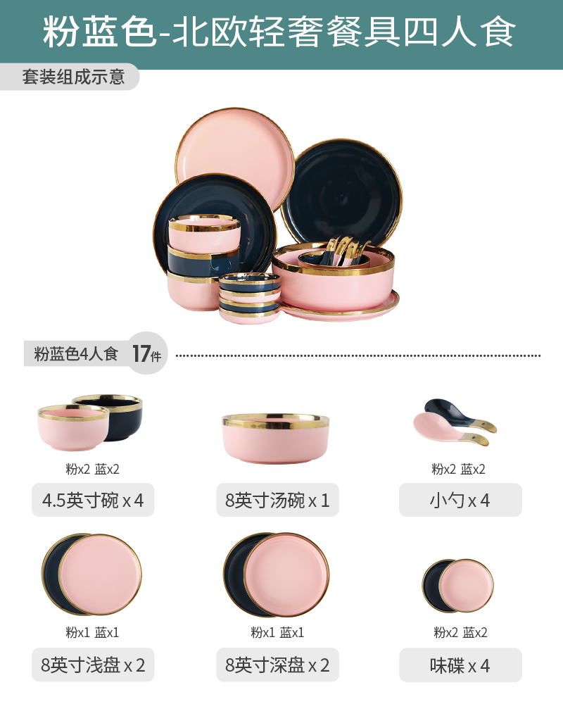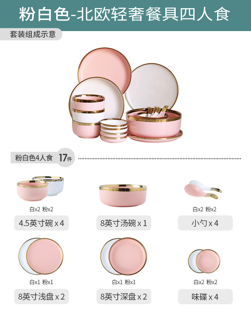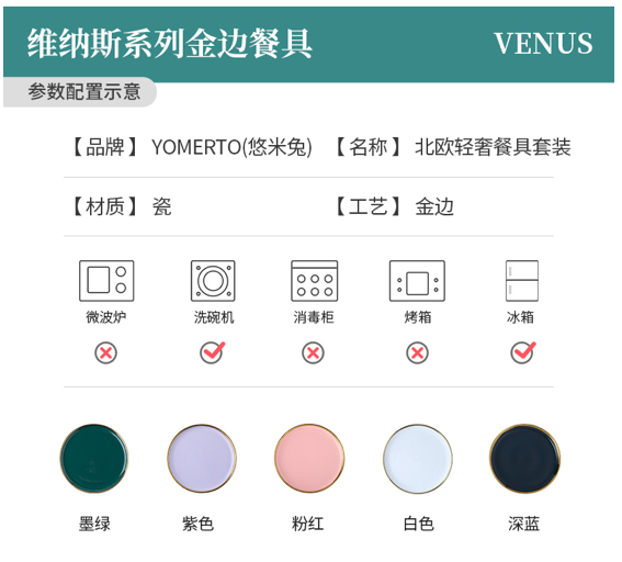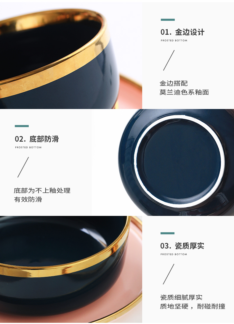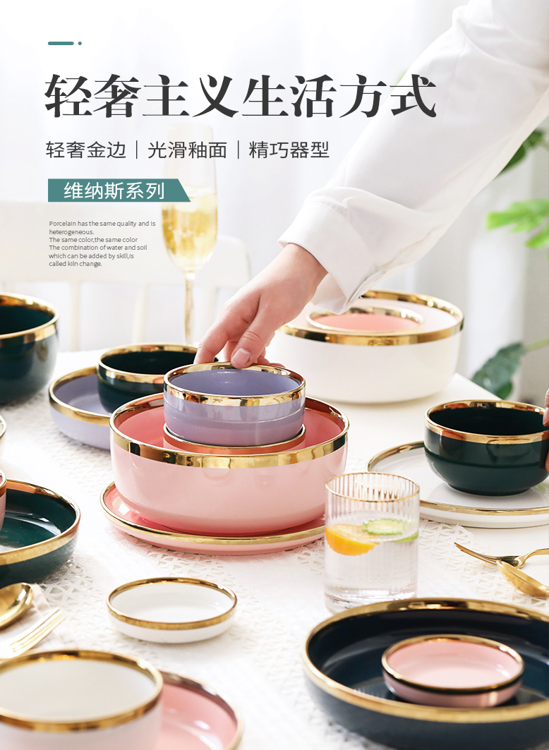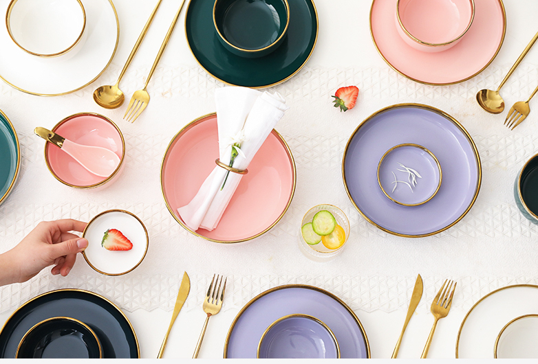 莫兰迪色系,非常耐看,色泽光洁饱满,宽金边质感很有格调,让日常每餐都具有仪式感的加持,怎么拍都很美。