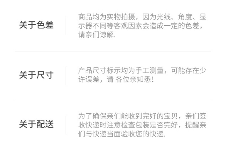 也请亲们一定当面签收,万一有破损,请24小时内拍图联系客服,一个破损可退差价,两个及两个以上可免费补发的哦。