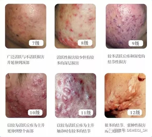 第十二级:有很多的结节,囊肿性损害,若不及时治疗将留下永久性疤痕。