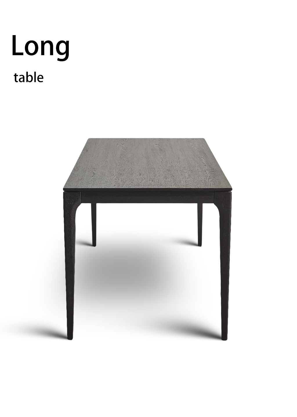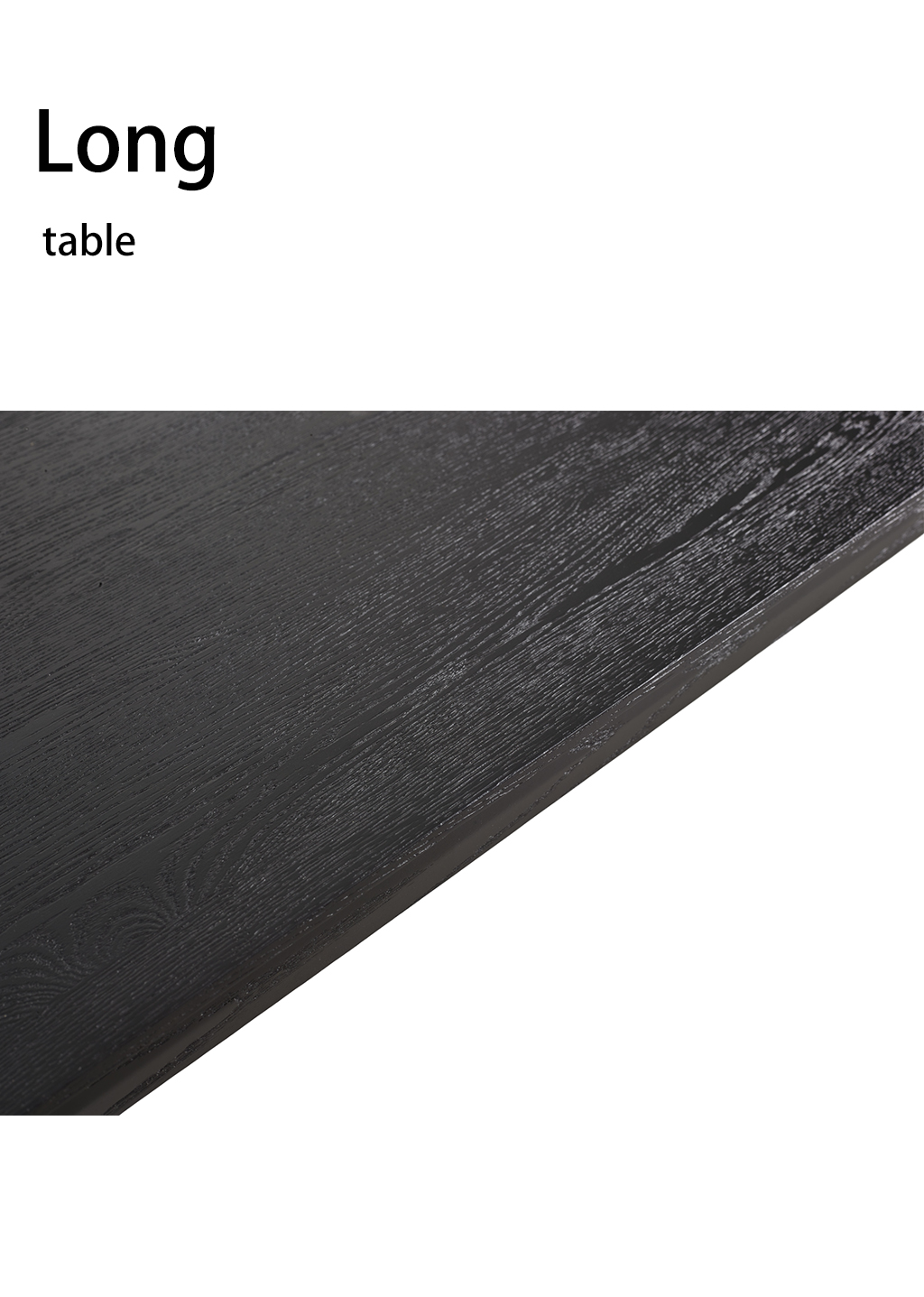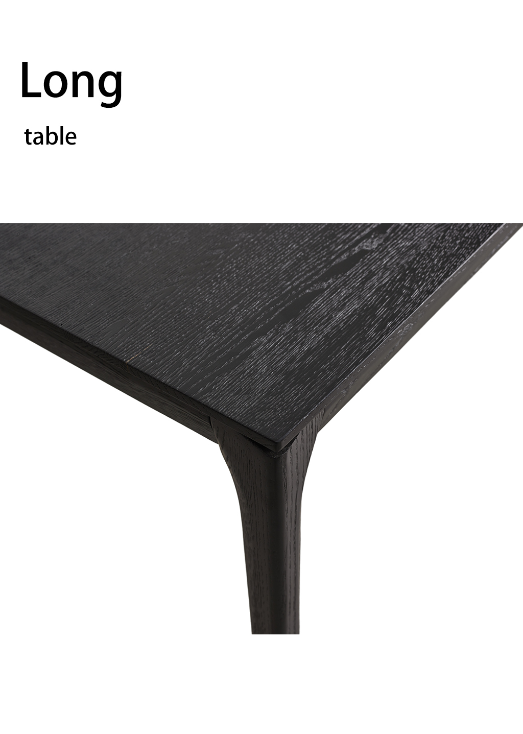 长川餐桌每一道凹凸都是时光的指纹,选用北欧寒带橡木打造,质地坚硬,环保清漆工艺,保留原木的呼吸孔隙,静谧黑温润似月光。简洁修长桌面,柔和边角与自然流畅线条平衡,赋予透气轻盈之美。实用设计兼具颜值与功能,三种尺寸可选,当作办公桌也合适。
