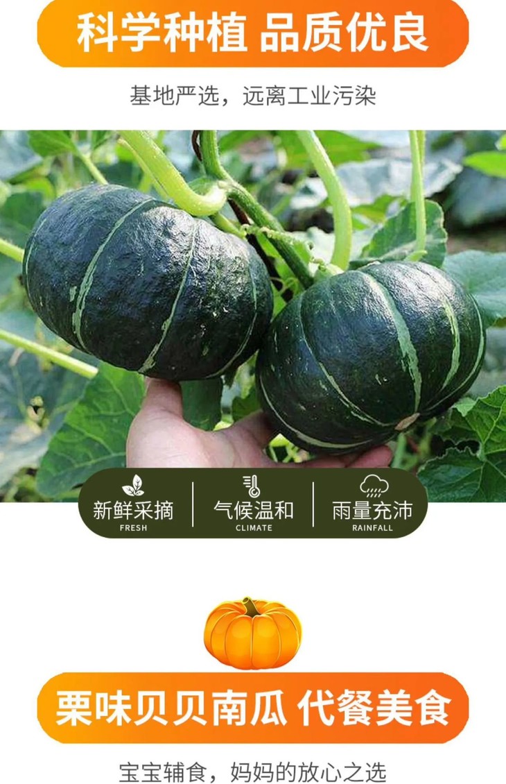 2.贝贝南瓜可蒸,可烤,可煎,方便食用,健康粗粮,男女老少都可食用。尤其适合宝宝辅食。