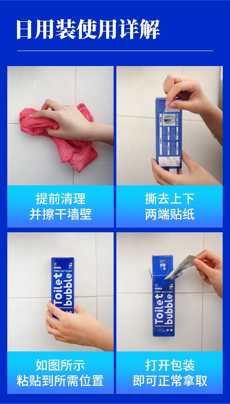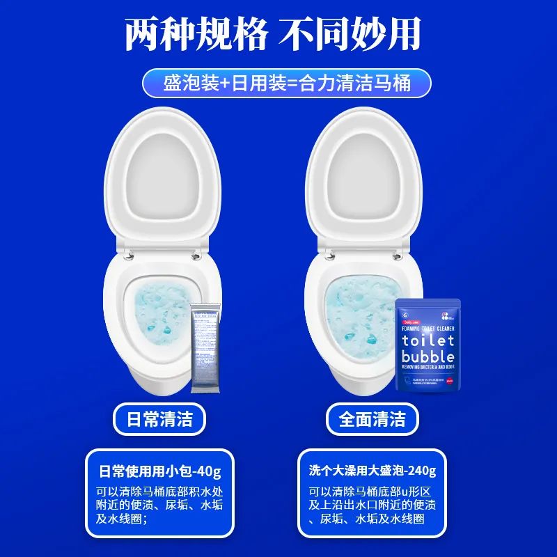 日常清洁可以使用40g的独立小包装,用于清洁便渍、尿垢、底部积水处的水线圈。