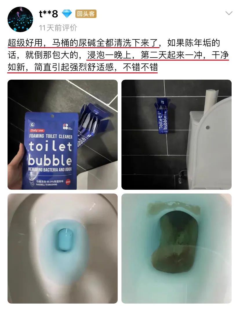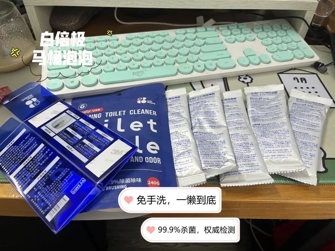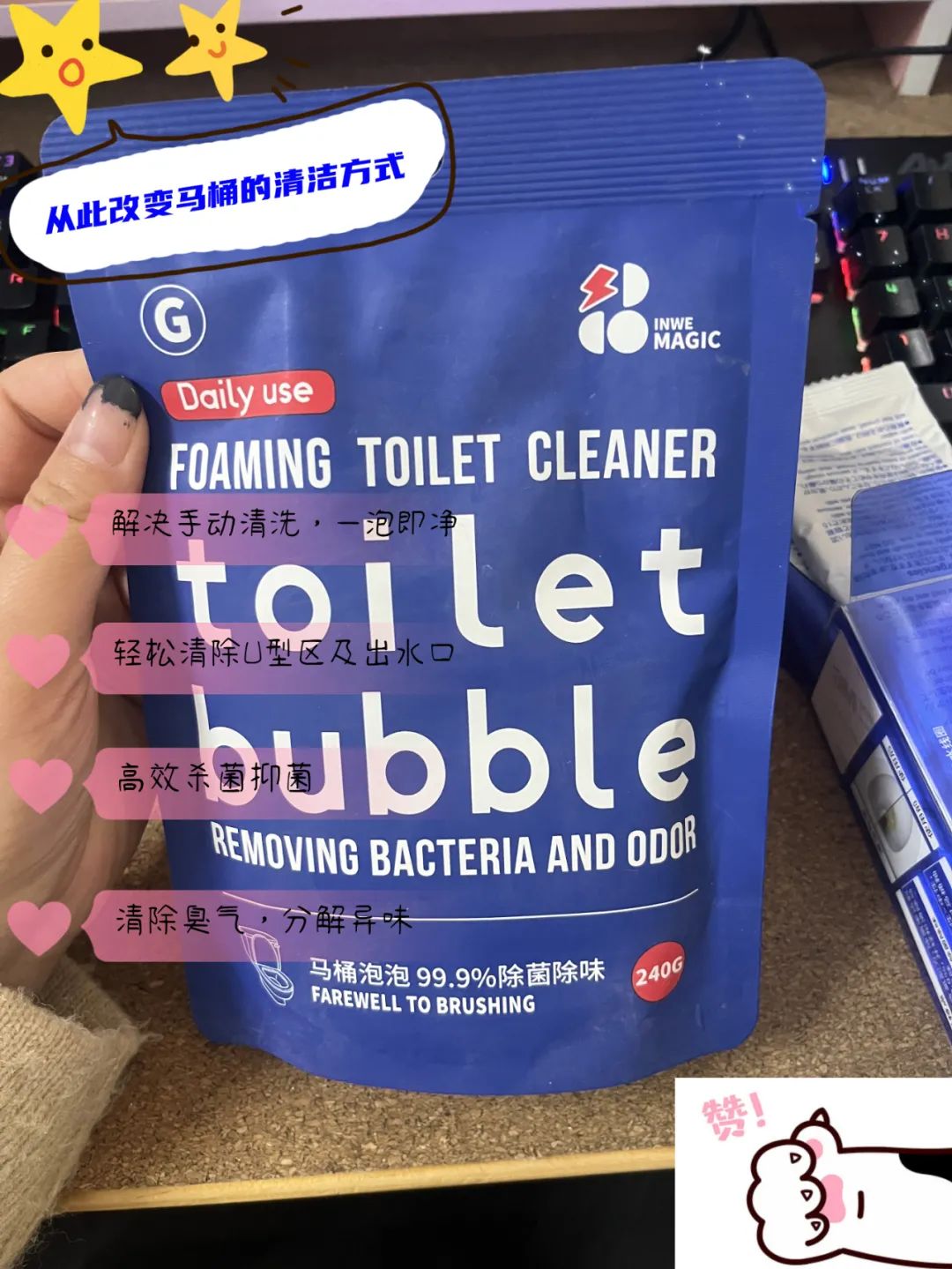 一袋相当于清洁剂+管道疏通剂+空气净化剂!全自动清洁,免水洗!解放全家双手!老公呲尿也不怕!有它帮忙刷马桶