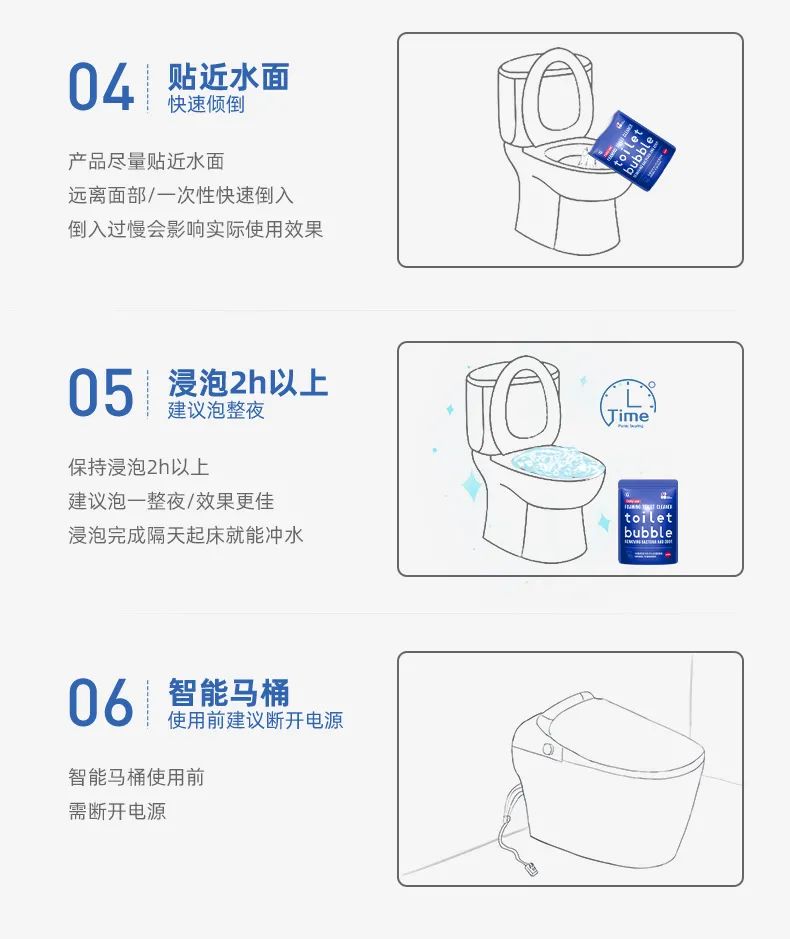泡泡还能溶解管道垃圾,分解马桶异味,阻隔异味上涌。