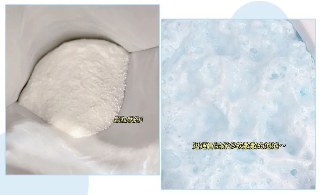 咱们这款清洁剂堪称“魔力”泡泡!质地是颗粒的粉末状。