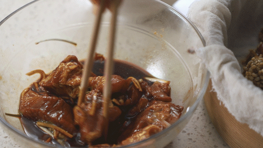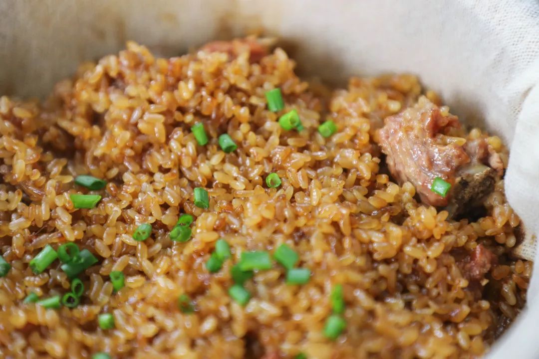 清洗后的排骨经过各种调味料的腌制,再裹上一层提前泡发调味好的糯米,上锅蒸熟。做好的排骨散发着别具风味的粮粽香,一口咬下去不仅有着腌制的酱香,还有着糯米的软糯,吃起来味道真的超级赞!