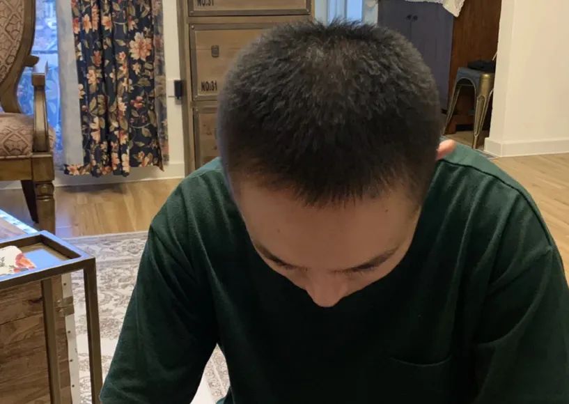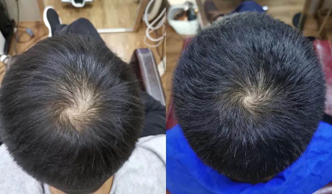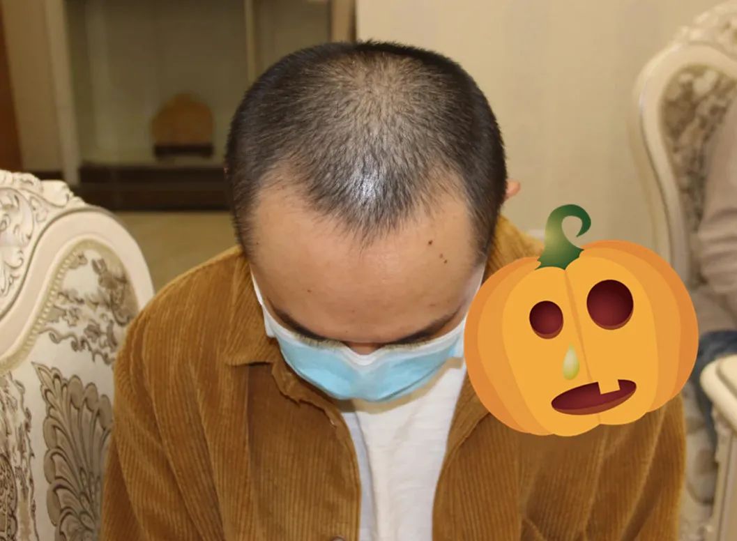 头顶上本来没多少了,出油的头发还紧紧抱在一起,头皮留白更大了,秃头更明显了。