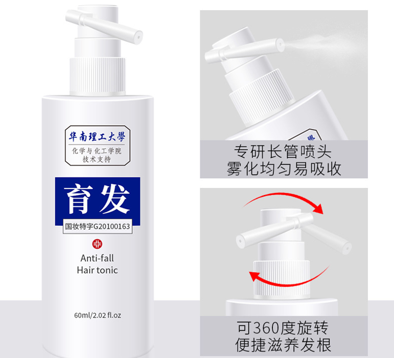 育发液约5cm的长喷头,用起来很方便,可以360°旋转,使用起来更加方便,还可以针对脱发区域进行滋养。