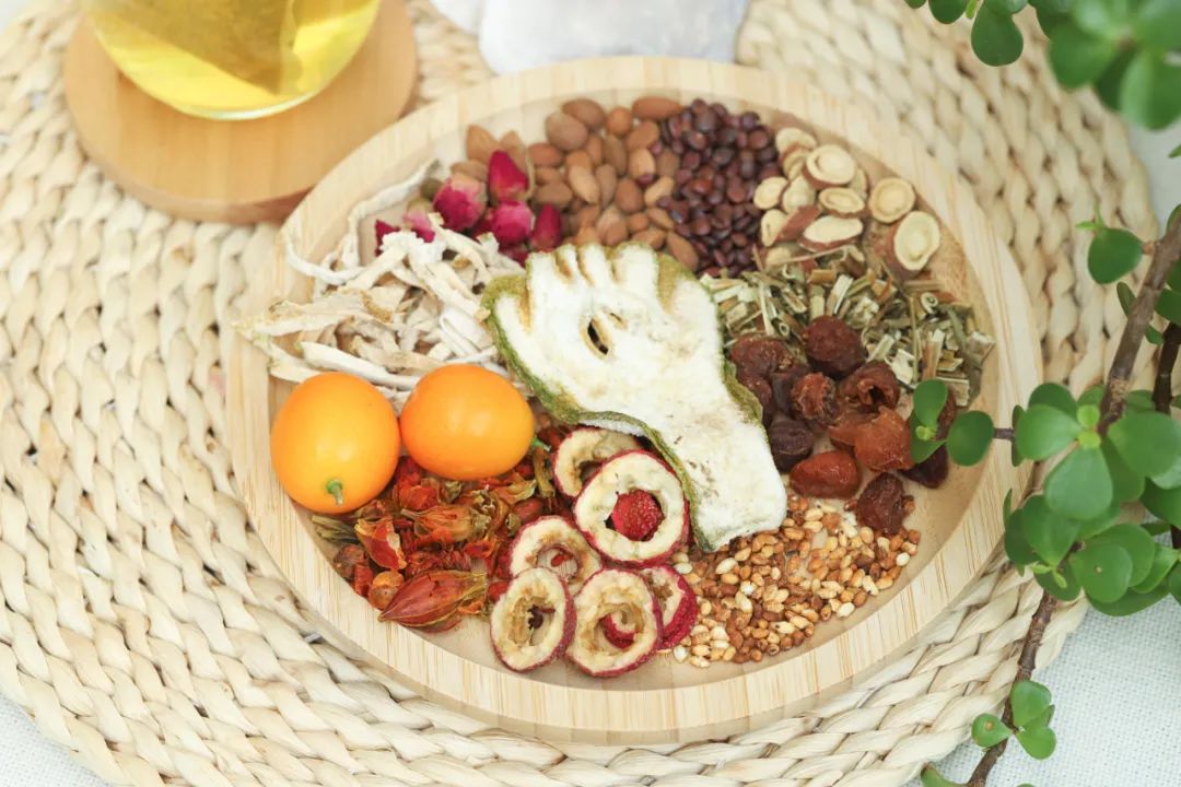 龙眼肉+桃仁为臣,给身体储存好满满的能量,让津液常常充盈,气与血才能电力充足,让你看起来气血都是满满的,连肌肤状态都变得滋润好看起来。