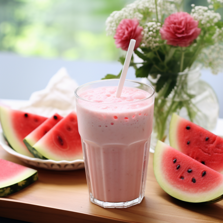 1、西瓜洗净去皮去籽切块,泡出绿茶备用。