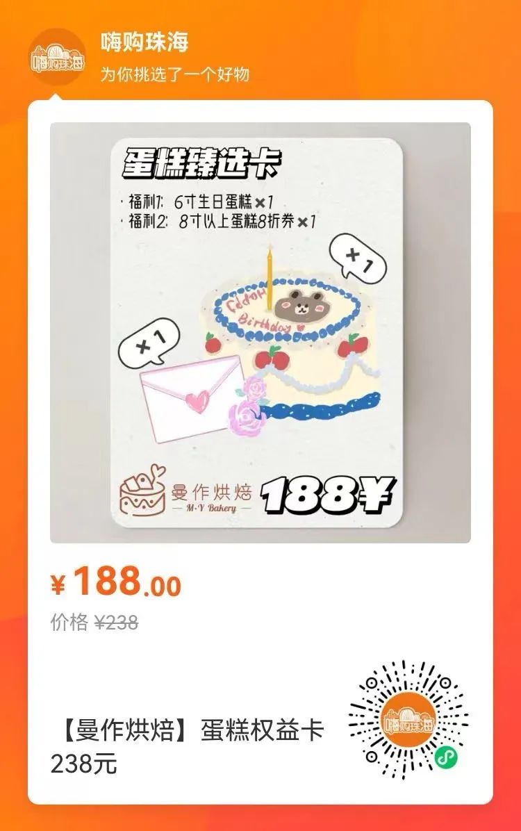 直接小程序发放一个价值238元以内的6寸生日蛋糕(不含运费)