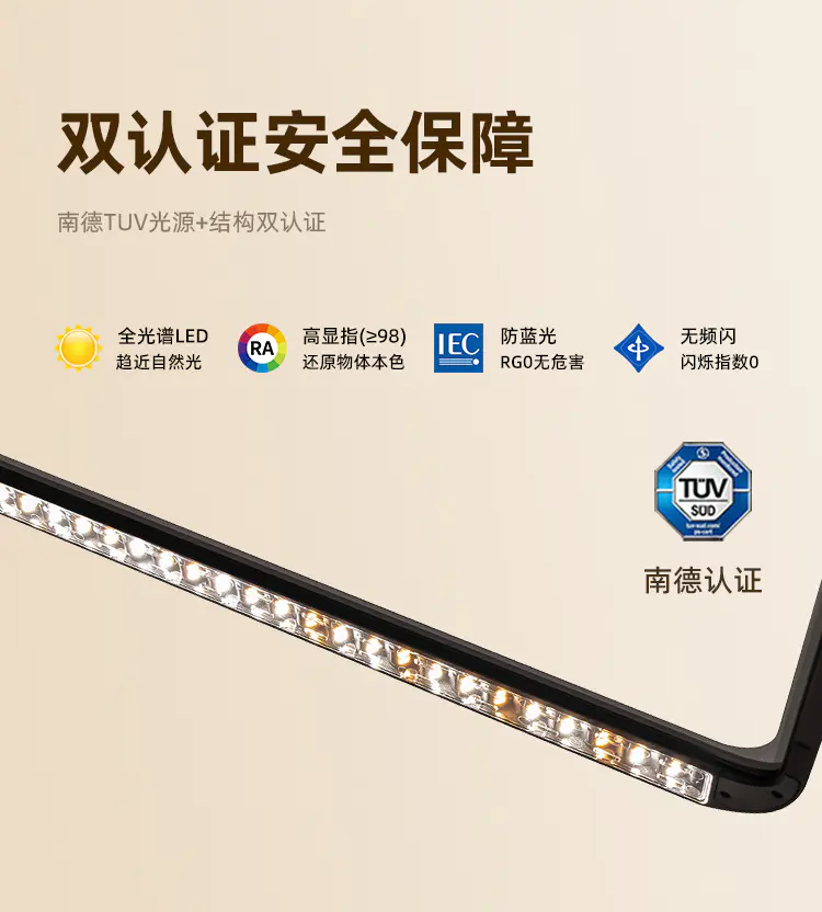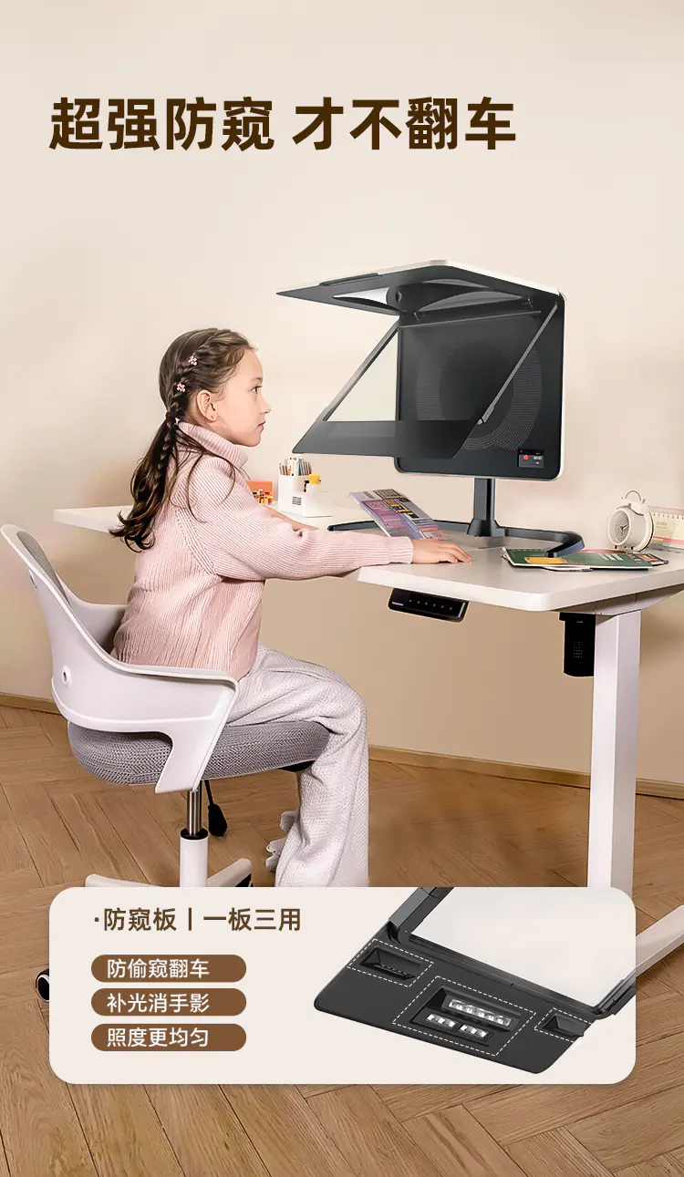 融合 “断近补远、祛暗补光、降对比度” 理念:3-8 米精准望远契合防控第一性原理;反射式 DOT 2.0 专利降低视网膜刺激;净化级消影技术实现 “无手影、无人影”;南德 TÜV 认证全光谱光源(Ra≥98、RG0无蓝光危害);节律式自然光模拟贴合人体用眼节律,防窥板一板三用,全方位守护视力。