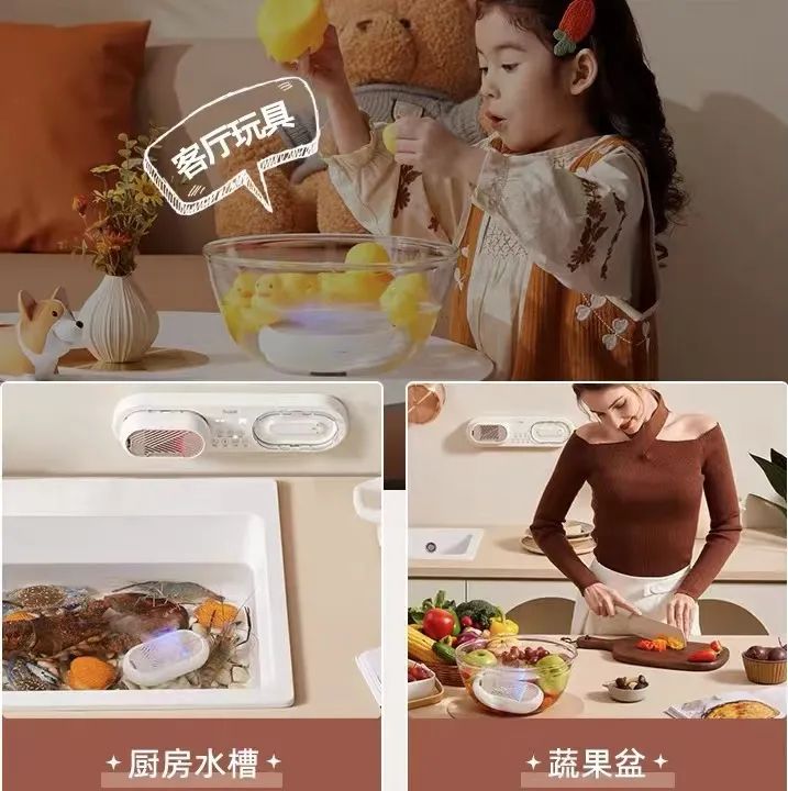 还可以教宝宝清洗消毒自己的碗筷,还可以帮妈妈洗菜,一点都不用担心给宝宝使用~