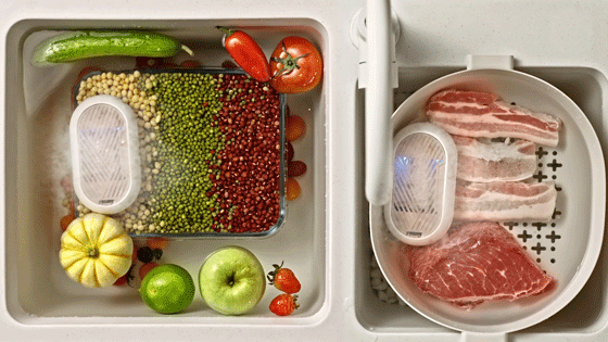 只用将清洗仓往不同的类品里面一放,它就开始帮你洗菜、洗肉对懒人十分友好。