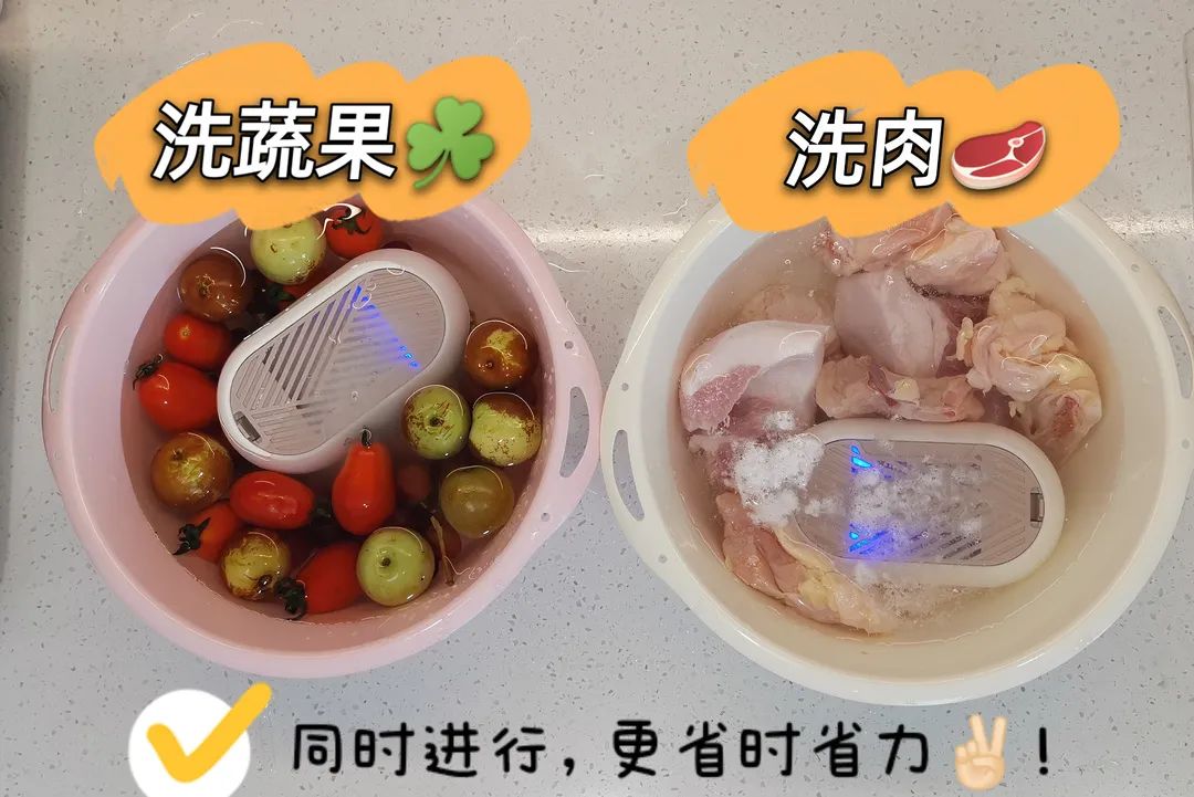 而且清洗机放进食物清洗的时候是无线的,一点都不用担心会厨电等事故发生。