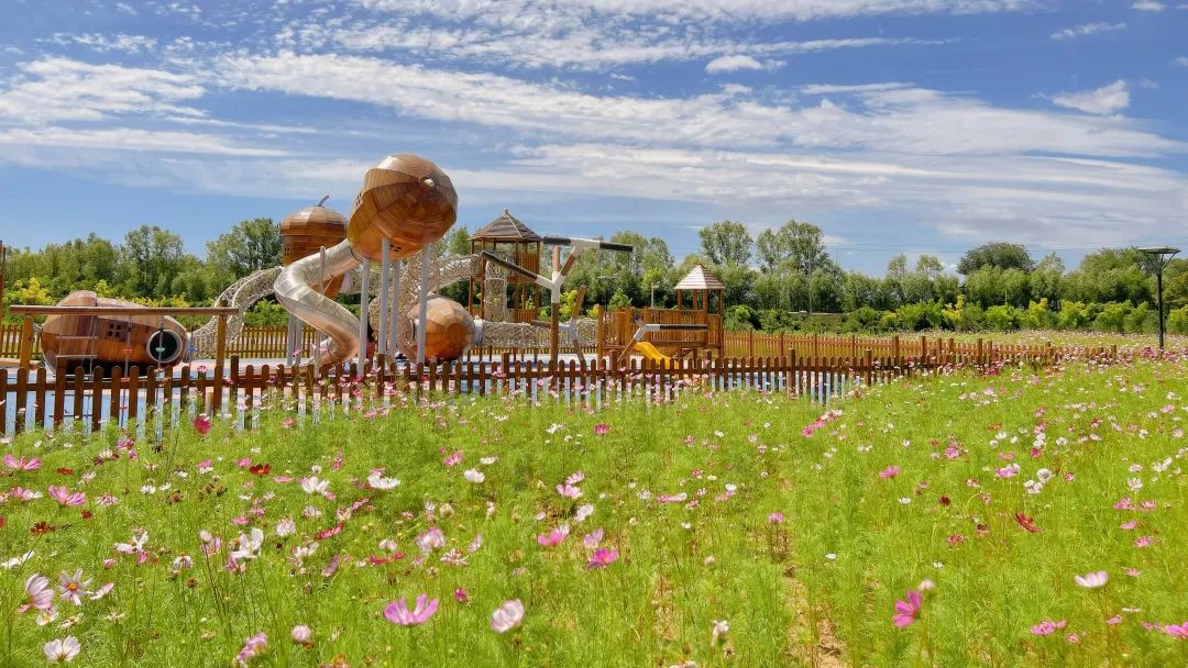 户外探索自然上,二期丽璟楼前就有一大片儿葡萄园🍇,这也是延庆Club Med的特色之一,每到8月果实丰收还可以参加采摘活动(自费仅几十元)。对了,小朋友最爱的松果户外乐园就建于一大片花海旁,花期一直延续到10月,加上本身酒店背靠松山脚下, 穿梭接驳车行驶在林荫大道上,从葡萄园到花田,随手一拍,颇有南法度假之感,山野趣味十足。