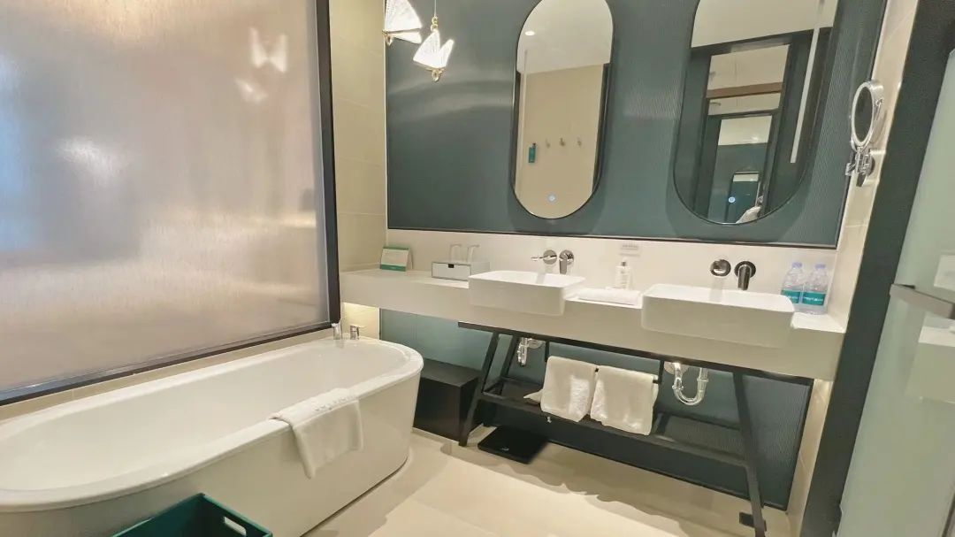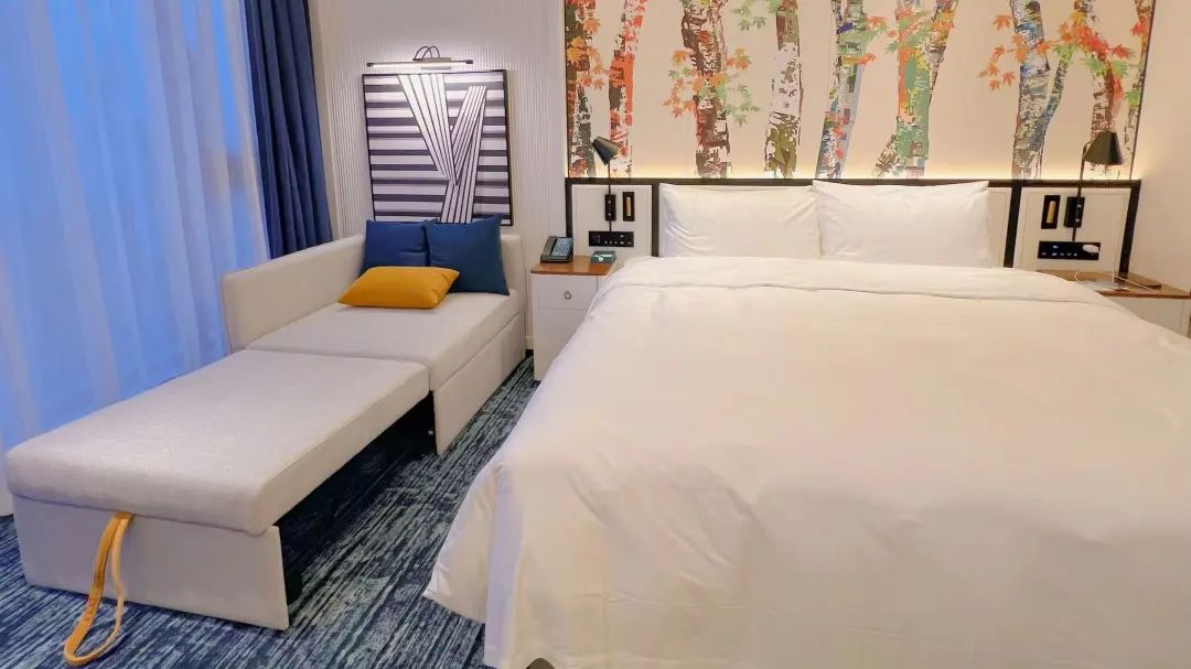 此次二期丽璟楼开业升级,”房间“就是最大的改善,完美解决此问题:独立新楼、全新法式蓝白红度假风装修、更宽敞的面积、重要的是每间基础高级房都配有可变为1*2m的沙发床,这是一期老客房完全没有的,入住更加从容舒适,2大2小也没问题。虽然它于7月15日才正式对外开放,但实际冬奥会期间已是官方接待用楼,完全不用担心初运营阶段的味道或服务问题,已经比较成熟,对住宿品质有要求的选新楼不会错。