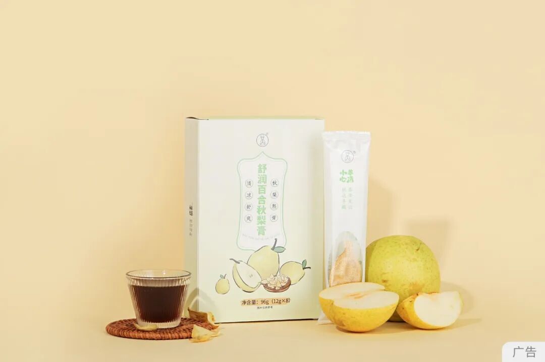不同于常规的玻璃罐包装,定量的勺装设计,一次一勺,一勺喝掉一颗梨;