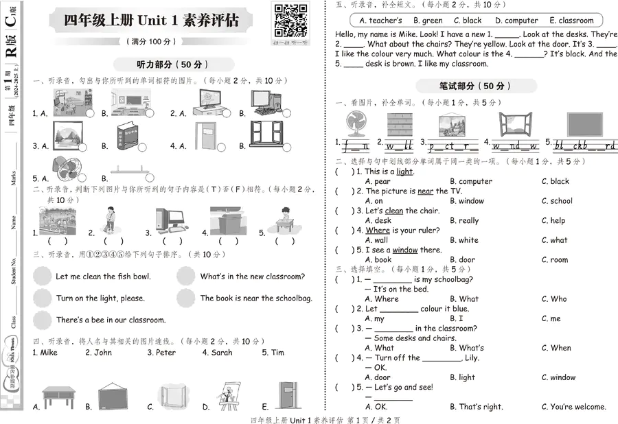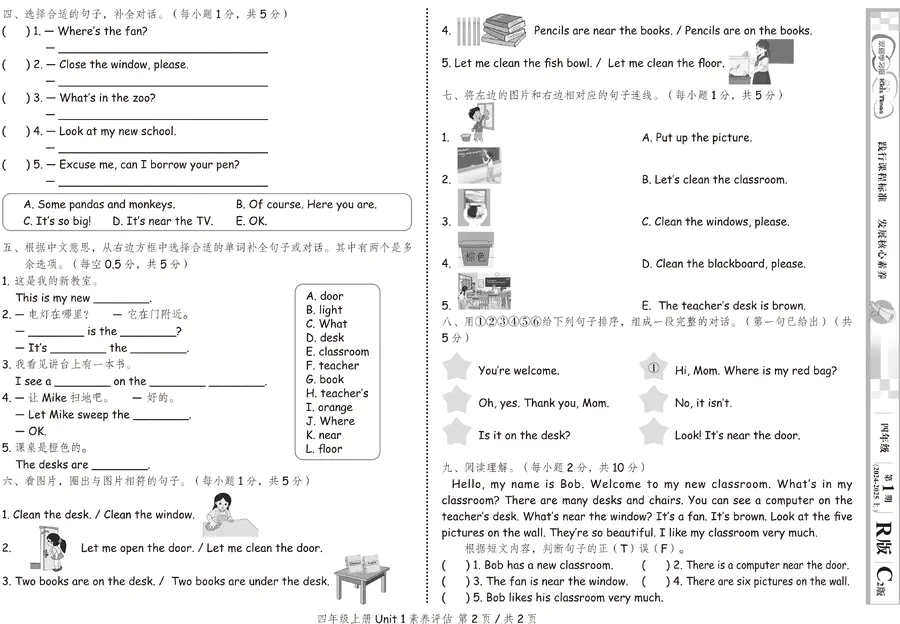 《双语学习报•Kids Times》小学英语样报 四年级 R版素养评估 第1期